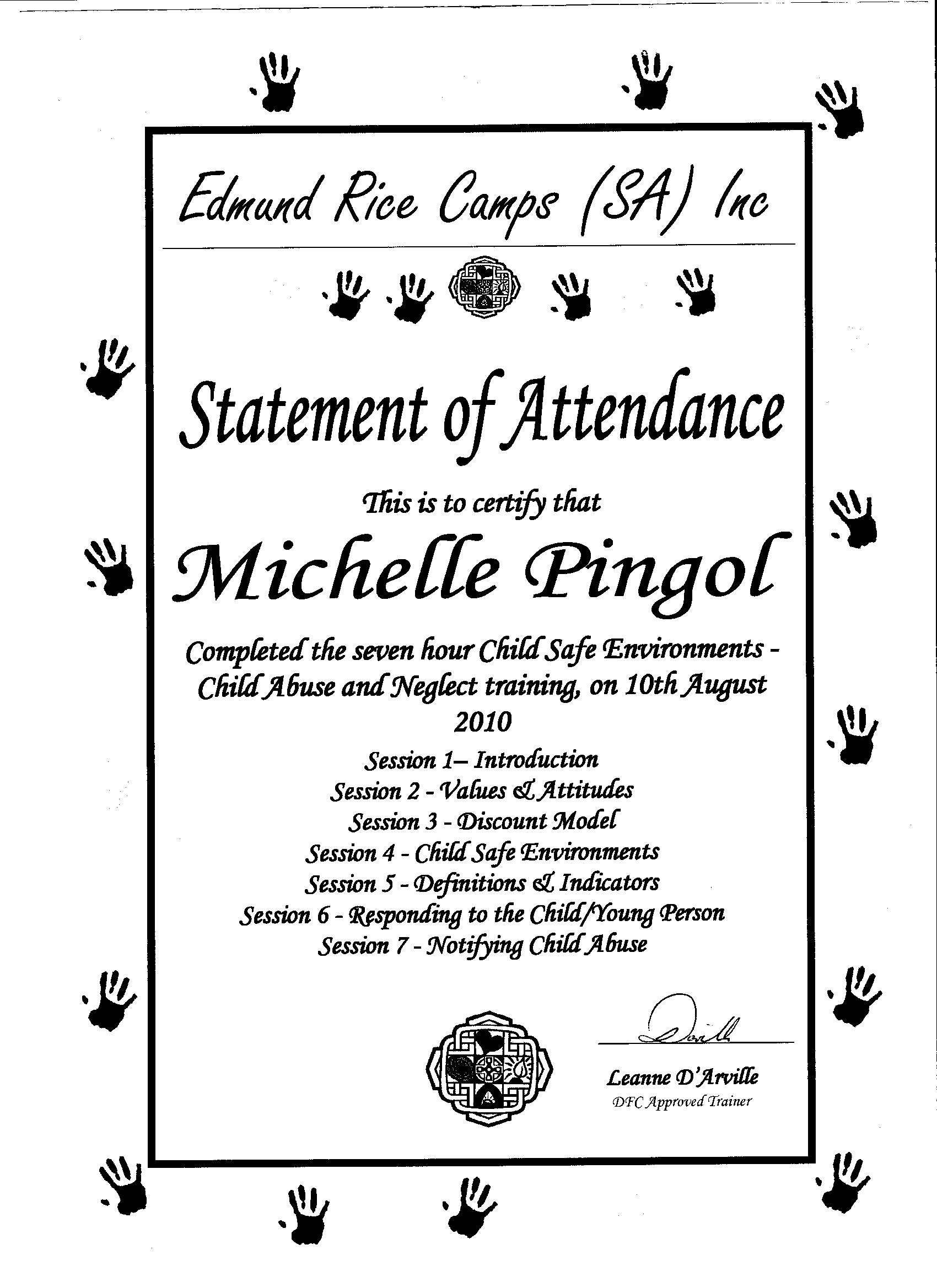 2010Certificate of Child Safe Environment, Child Abuse and Neglect Training