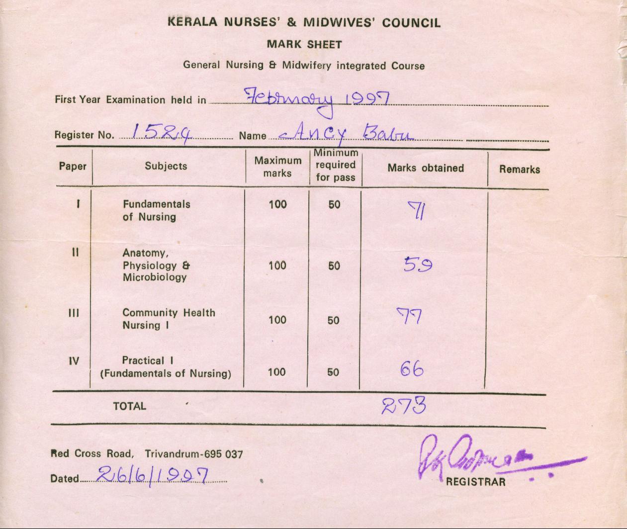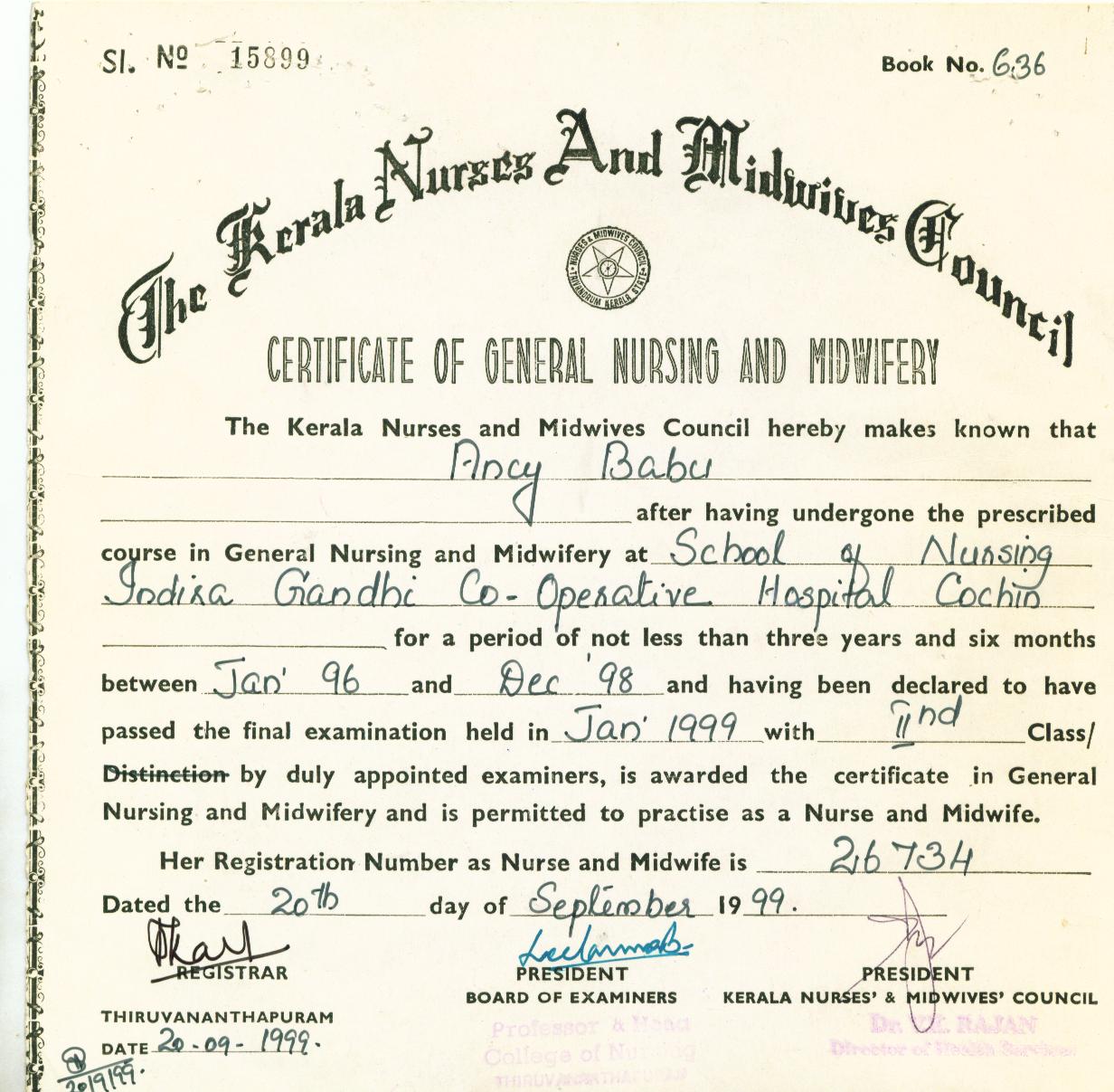 Cerificate of General nursing and midwifery