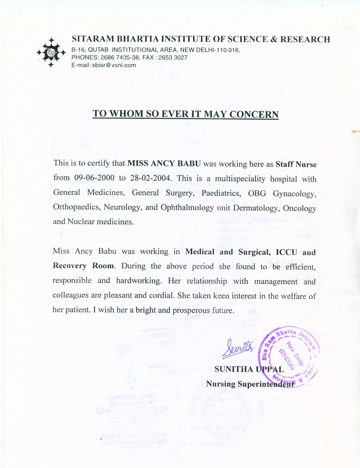 May 2004 - July 2006Registered Nurse Div 1 at Seetharam Bhartia Hospital Delhi