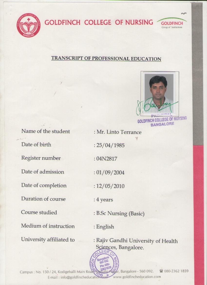 june 2002 - March 2004Bachelor in Nursing (Bachelor in Nursing) at Gold Finch College of Nursing