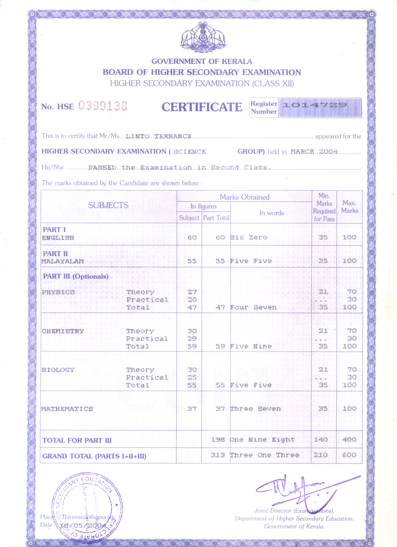 june 2001 - march 2002Board of higher secondary examination (Higher secondary) at St. joseph Higher secondary school
