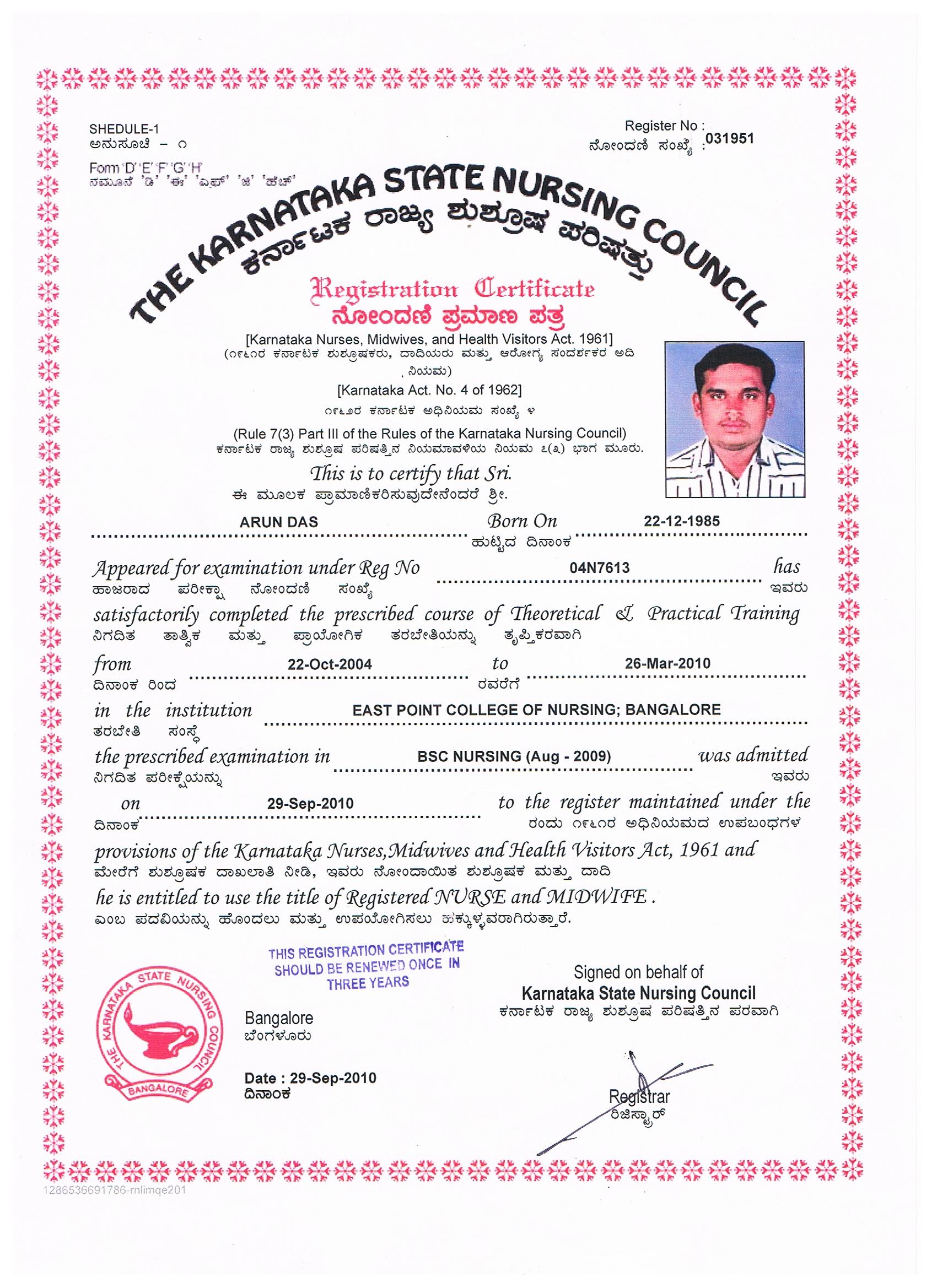 Sub:-Application for the post of Registered Nurse