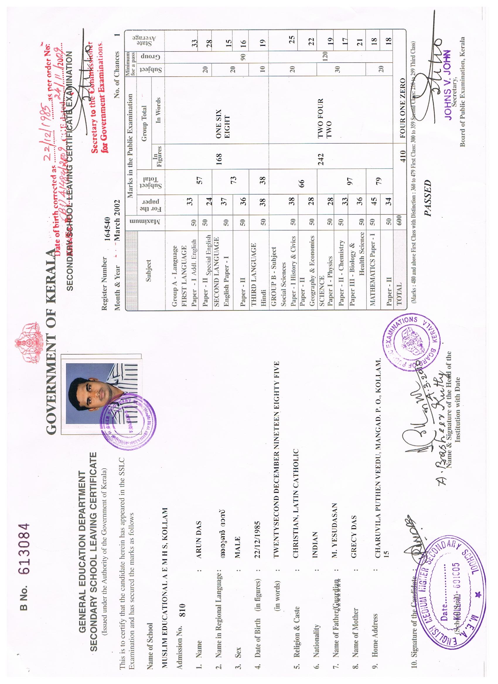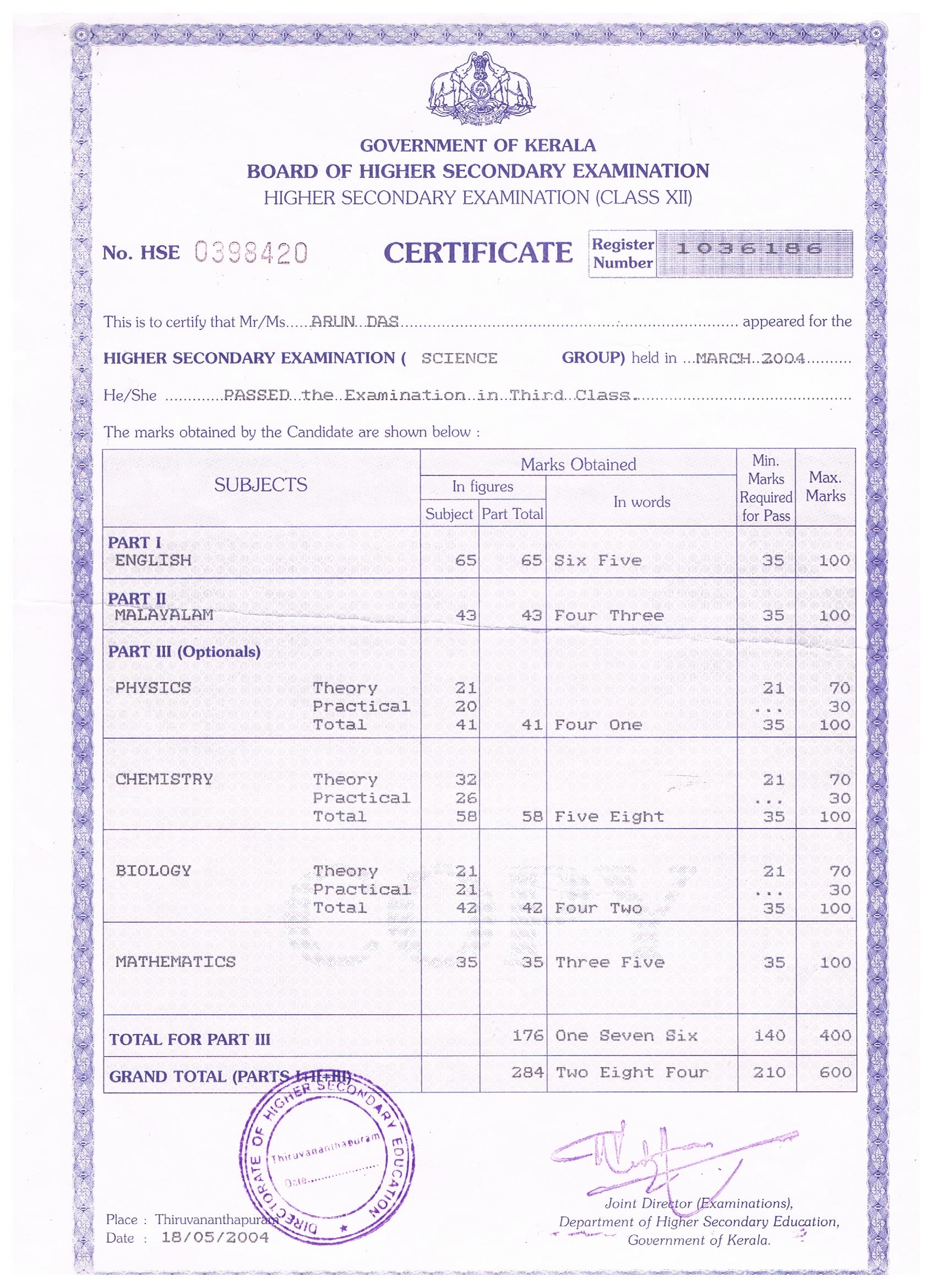 june 2001 - march 2002Board of Higher secondary Exammination (plus two) at Govt: Higher secondary School, Mangad.