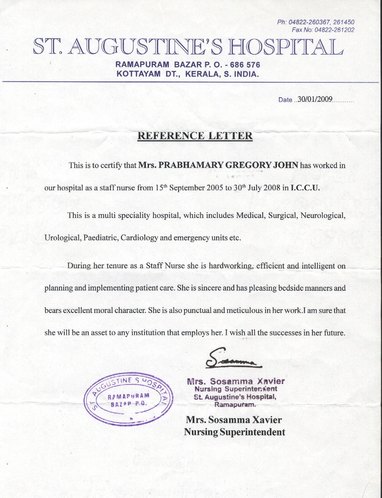 22-01-2009 - 31-12-2010Registered Nurse at St: Augustine's Hospital, Ramapuram Bazar, Kerala, India.