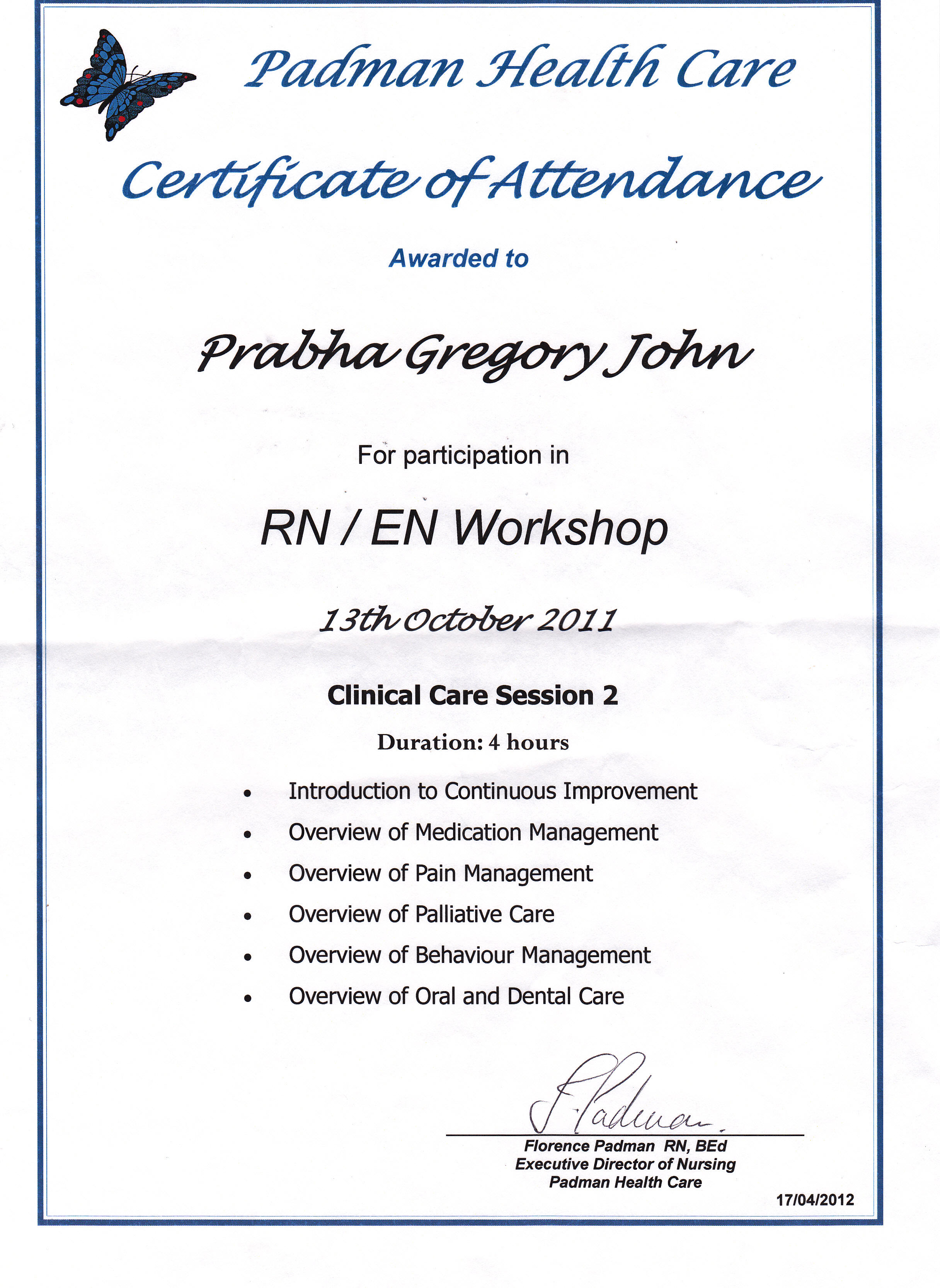 06-12-2011Certifiate for attending medication management workshop